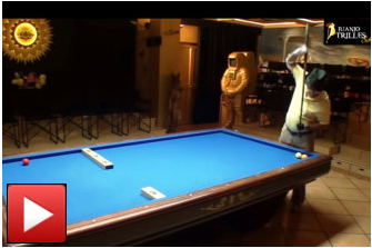 Diese 18 Minuten lang lohnt es sich, dem Massémeister bei seinem Handwerk zuzusehen. Auch Musikliebhaber werden ihre Freude haben, aber die Hauptsache sind freilich diese phantasti-schen Lauflinien der Bälle, so als ob es keine Physik gäbe. Und sogar die Oberflächen der Banden nimmt Juanjo Trilles für seine Tricks mit zu Hilfe. Unverzichtbar - 17:58.