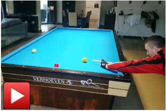 Er gehört wohl zu den besten Billardspielern des Erdballs: Semih Sayginer. Hier ist eine Serie von Kunststößen, die einem abwechselnd den Kopf schütteln und ein andermal lächeln lassen wegen der Möglichkeiten, die Sayginer mit seinem Queue der Physik abringt. Wenn Du bereits alles andere auf dem Billard beherrscht, dann solltest Du einige der Tricks nachmachen - aber nicht auf unseren Billards.